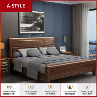 苏宁放心购胡桃木实木床1.8m1.5米双人床简约现代软靠中式主卧室轻奢储物床A-STYLE家具