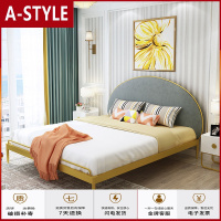 苏宁放心购北欧风铁艺床半圆软包靠背1.5米1.8米双人床网红铁艺公主床铁架床A-STYLE家具