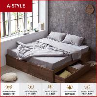 苏宁放心购北欧实木黑胡桃无床头抽屉气压箱体榻榻米矮床简约日式卧室双人床A-STYLE家具