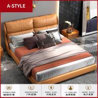 苏宁放心购意式极简真皮床现代简约双人床轻奢小户型主卧1米8婚床软包床A-STYLE