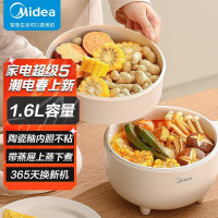 美的(Midea) 麦饭石色电煮锅多用途锅家用电火锅多功能1.6L容量煎烤电热锅电炒锅不粘锅 [1.6L蒸格款]白瓷釉不