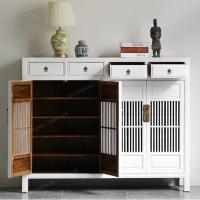 苏宁放心购现代新中式鞋柜老榆木简约镂空储物厅隔断玄关柜实木古典餐边柜A-STYLE家具