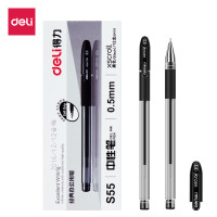 得力(deli)S55中性笔0.5mm半针管中性笔签字水笔 12支/盒 黑色
