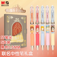 晨光(M&G)K3561在逃公主童话限定礼盒套装按动中性笔5色5支/盒0.5黑色签字笔按压式水笔黑笔按动笔类学生文具礼物