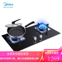美的(Midea)燃气灶4.5KW大火力防爆钢化玻璃面板六年质保熄火保护台嵌两用双灶(天然气) 液化气+炊具