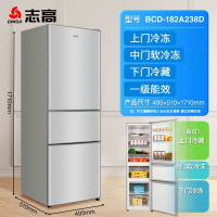 志高电冰箱家用迷小型双开门宿舍出租房办公室冷藏冷冻小型冰箱 银色三门高171CMBCD-182A238D一级节能