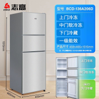 志高电冰箱家用迷小型双开门宿舍出租房办公室冷藏冷冻小型冰箱 银色三门高152CMBCD-136A206D一级节能