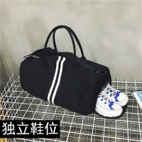 桂兰珊(Guilanshan) 独立鞋位健身包短途旅行包男女运动包手提圆筒包条纹斜挎包行李包