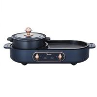美的(Midea)电烤炉电火锅家用电煮锅烧烤大功率火锅烤肉煎烤涮一体锅盘多功能多用煎炖锅 蓝色