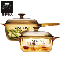 美国康宁(VISIONS)锅具套装VS38FL+VS16FL晶彩透明锅 3.8升+1.6升 炖锅汤锅煮锅养生锅/盅