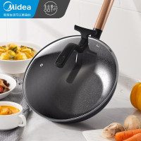 美的(Midea)喆物炒锅不粘锅麦饭石色家用炒菜锅平底可立锅盖燃磁通用 硬氧灰色[30CM口径]