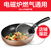 [28口径]燃磁通用款金色 美的麦饭石不粘锅家用炒锅电磁炉煤气适用炒菜专用平底锅智能生活