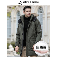 迪伽默 意大利VDG 时尚连帽中长款90白鸭绒羽绒服 2色可选