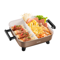 美的电火锅多功能鸳鸯锅家用6L大容量不粘电煮锅插电炒菜锅炒锅 咖啡金
