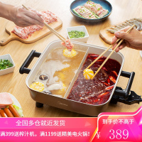 美的电火锅多功能鸳鸯锅家用6L大容量厨房用电煮锅插电一体学生锅 咖啡金