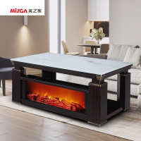 美之家辉煌140*80*56-74cm冰川白壁炉遥控语音播报智能升降电暖炉电暖茶几多功能电暖桌家用电取暖器烤火炉桌
