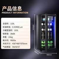 荣事达冰吧小型单客厅家用小冰箱办公室透明茶叶饮料冷藏红酒柜 -118黑色[全冷藏+微冻]带LED蓝光灯