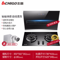 Chigo/志高抽油烟机燃气灶套餐家用厨房烟机灶具套装自动清洗特价 智能体感+自动清洗+猛火嵌入式4.2kw双灶
