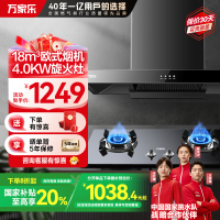 万家乐 烟灶厨电套餐装 18立方大吸力油烟机 欧式宽屏拢烟 双层风轮吸烟 台嵌两用液化气灶AT031+KA031B
