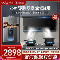 万和25m³顶侧双吸油烟机7字机燃气灶AI双伺服燃气热水器天然气烟灶热三件套装WL856+C5+ME5T16烟灶套餐