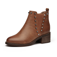 珂卡芙冬季马丁靴铆钉机车靴粗跟短靴女英伦风学生中跟裸靴女靴潮