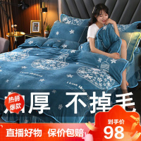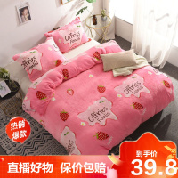 [精品特卖]加厚牛奶四件套床上用品法兰绒保暖珊瑚绒床裙款被套三件套冰星梦