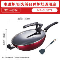 美的不粘锅炒锅家用电磁炉煤气灶燃气灶炒菜锅专用无烟锅平底锅 *(32cm酒红色+抑菌铲)