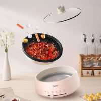 美的电火锅家用宿舍学生锅多功能一体电煮锅炒锅分体式火锅4-6人 粉红色