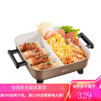 美的电火锅多功能鸳鸯锅家用6L大容量不粘电煮锅插电炒菜锅炒锅 咖啡金