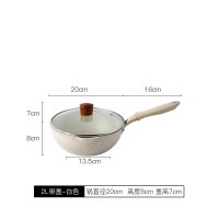 麦饭石家用炒菜锅小号煎炒两用电磁炉专用平底锅小煎锅炒锅 白色20cm+盖子