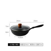 麦饭石家用炒菜锅小号煎炒两用电磁炉专用平底锅小煎锅炒锅 黑色24cm+盖子