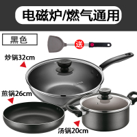 黑色3件套[电磁炉/燃煤气通用] 苏泊尔不粘锅三件套装锅具全套家用不沾平底炒锅汤锅电磁炉燃气灶