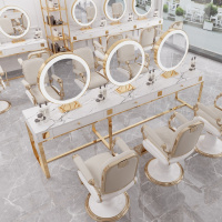 苏宁放心购大理石美发店镜台带灯网红工作室学校发廊专用烫染桌理发店双面镜A-STYLE