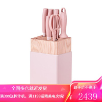 双立人刀具套装NOW S系列7件套水果刀菜刀中片刀多用刀斩骨刀磨刀棒刀架厨房刀具套装 虾粉色厨刀