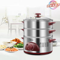 暗红色 美的电蒸锅家用多功能蒸笼小型不锈钢大容量自动断电多层蒸菜正品