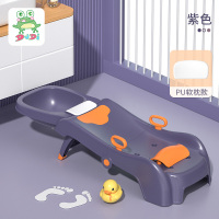 DuDi/青蛙嘟迪 母婴幼儿童洗头发躺椅宝宝洗头床洗头神器可折叠小孩婴儿家用坐躺洗头凳 紫色(带水槽PU软垫款)