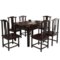 新中式折叠餐桌椅组合现代全实木小户型家用圆桌餐厅家具套装