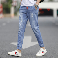 牛仔裤男2022夏季薄款九分裤青年哈伦束脚裤潮流时尚学生弹力休闲修身小脚裤子HOUQIYE
