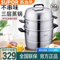 苏泊尔(SUPOR)304不锈钢三层蒸锅 SZ26E1/28E1/30E1大小可选 加厚聚能环复底蒸笼电磁炉燃气灶通用