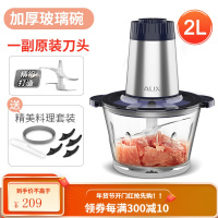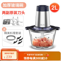 奥克斯绞肉机家用电动小型不锈钢全自动搅饺馅菜蒜蓉泥打碎辣椒机 [套餐二]2L玻璃碗+2副刀头