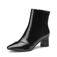 红蜻蜓女鞋冬季新款真皮英伦尖头短靴女加绒保暖粗跟宴会棉靴