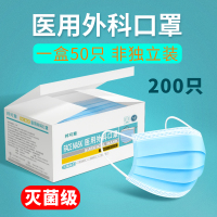200片蓝色灭菌型医用外科口罩一次性医疗口罩三层医护医生专用单非独立包装 细菌过滤率大于95%医用外科口罩50片/盒