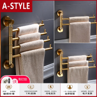 苏宁放心购金色毛巾架免打孔卫生间置物架毛巾杆底座可旋转实心双杆加长浴室A-STYLE