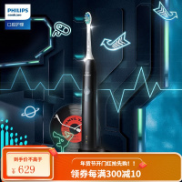 飞利浦(PHILIPS) 电动牙刷 净齿呵护型 成人声波震动牙刷 电刷小王 2种强度+力度感应|黑