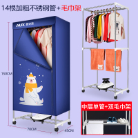 奥克斯烘干机家用速干衣大容量风干烘干器干衣机小型烤衣服烘衣机 升级加强宝蓝色款(20根不锈钢管)+毛巾架