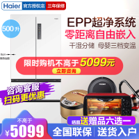 海尔冰箱500L零嵌入式家用白色一级变频法式多门超薄大容量冰箱EPP超净干湿分储零嵌BCD-500WGHFD4DW9U1