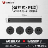 公牛(bull)0.5米黑色轨道+3个5孔+1个USB适配器可移动电力轨道插座厨房专用无线滑轨接线板家用插排插座