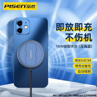 品胜iPhone13无线充电器(深海蓝)(自带Type-C扁口线)MagSafe磁吸式苹果手机无线充15W快充安卓通用