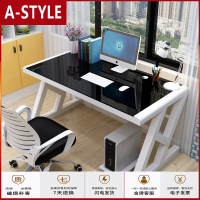 苏宁放心购简约现代书桌 钢化玻璃电脑桌台式家用办公桌 简易学习写字桌子A-STYLE家具