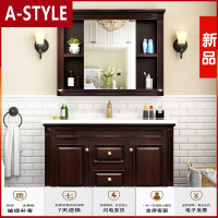 苏宁放心购卫浴新中式浴室柜组合实木洗手台落地洗漱面盆柜卫生间美式洗脸盆A-STYLE